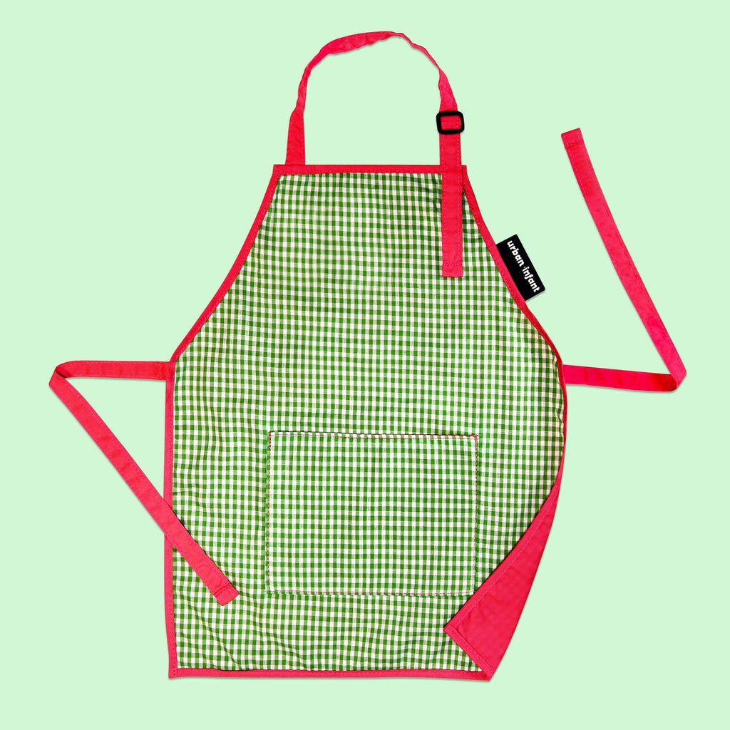 Our "Little Helper" aprons are made of a double-layered durable cotton/broadcloth for cooking, baking, gardening, and art projects at home or at school. The apron offers easy, everyday care – machine wash cold and tumble dry. With 2 size options to choose from and an adjustable neck strap, they are great for all kids for a variety of projects. Comes in 2 sizes: SMALL for toddlers ages 3-5 and MEDIUM for kids ages 6-12.