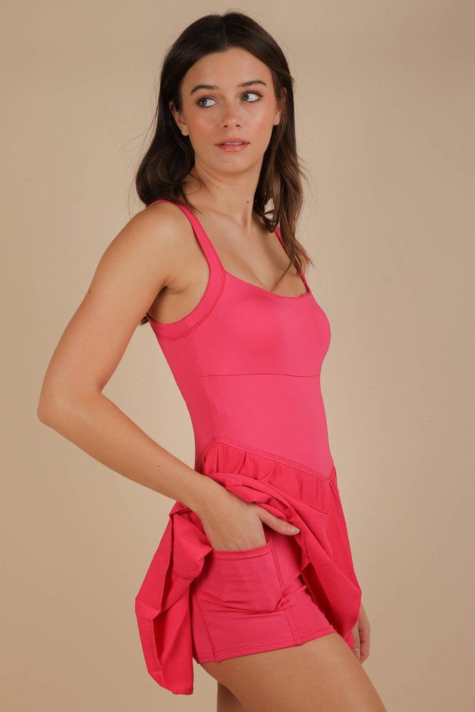 - Pleated Skirt Activewear Mini Dress with Under Shorts
